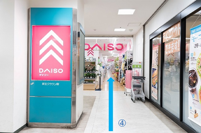 3.京王クラウン街の看板が見えたら、左折してダイソー入口へ