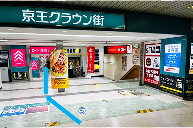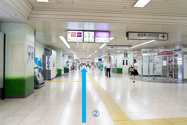 2.飲食店街を左手に、京王クラウン街の入口まで直進してください