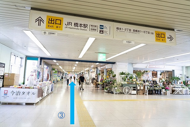 1.JR橋本駅改札を背にして、左側(南口方面)へ進みます